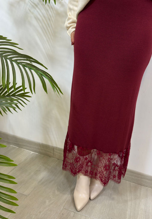 FALDA BAJO ENCAJE BURDEOS