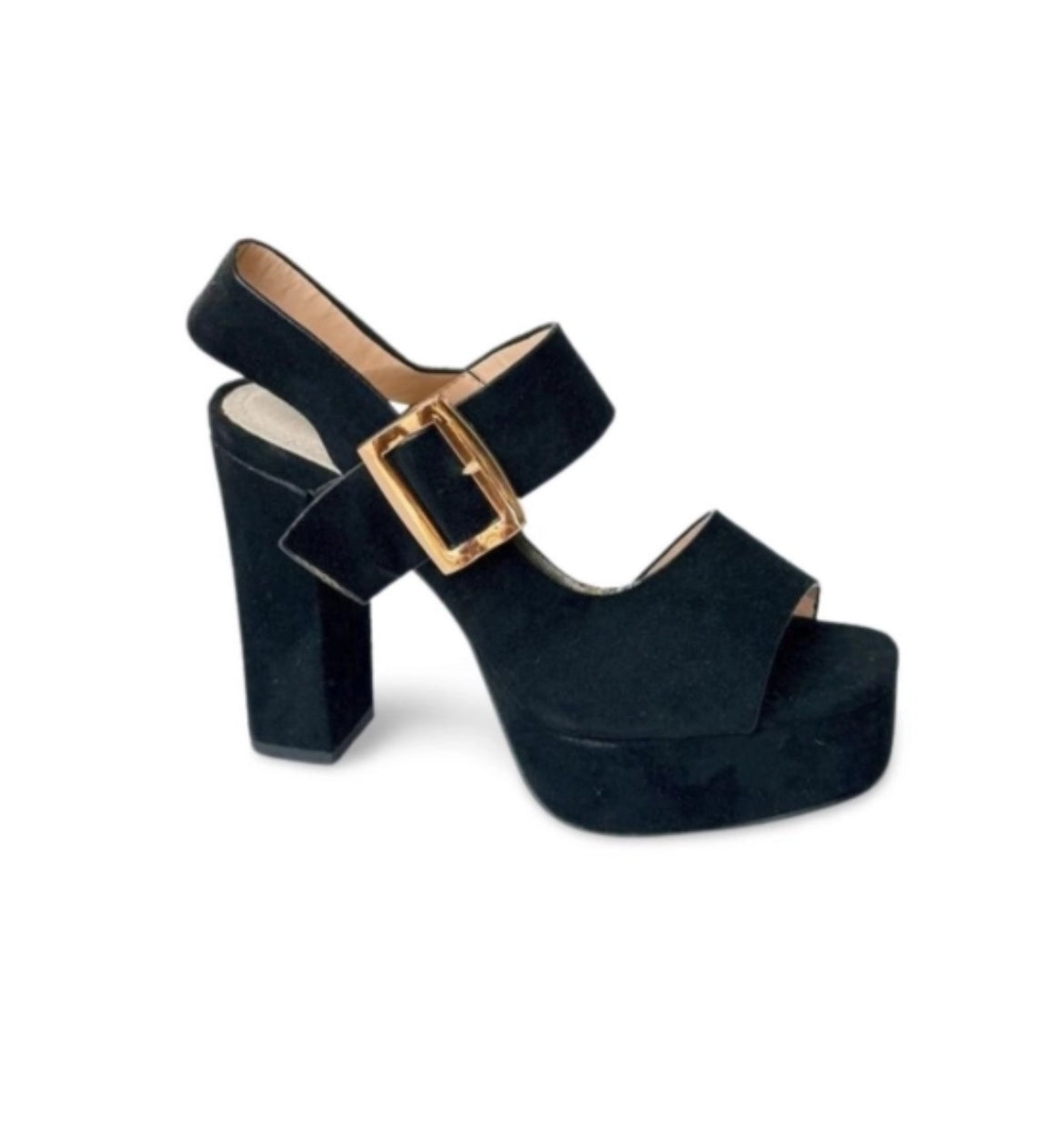 SANDALIA TACÓN ANTE NEGRO HEBILLA