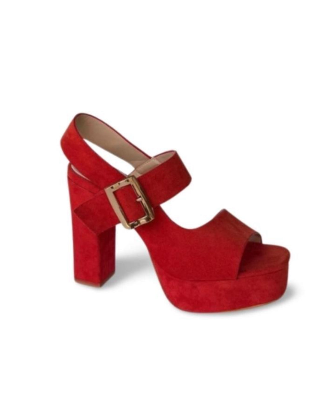 SANDALIA TACÓN ANTE ROJO HEBILLA